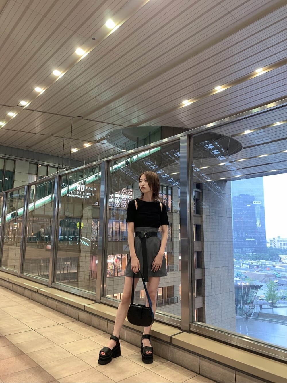 ほんの少しだけ肌見せができるカッティングトップス。あざとさが出せます♡スカートは中にインナーパンツが入っており、パンティラインも気になりにくいです!ハイウエストになっていますが、上からベルトを巻くとさらに脚長効果に繋げてくれます。厚底サンダルはスエードの生地を使用しているので、キズ・汚れが目立ちにくく長持ちで活用できます!