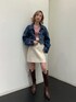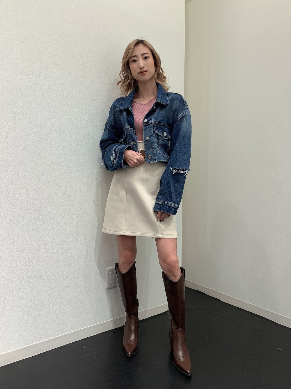 【デニムジャケット】春・秋にデイリーで羽織れるデニムジャケットです。EMODAでは袖部分にクラッシュが入っているので、中に着ているトップスの色をチラ見せすることができます。またクラッシュのおかげで抜け感も出せます!ショート丈なので足長効果に繋げてくれます! 【インナー】こちらのトップスは肌見せがチラリと出来ます♡大胆すぎないので甘すぎず着こなすことが可能です!春らしいカラーが揃っております!下着についてのご質問が多いのですが、気になる方はチューブトップがオススメです♡私は下着の片方の紐だけ下ろして着用しました。もう片方の紐で安定するので、チューブトップ苦手な方はぜひお試し下さい♪ 【スカート】ものすごいストレッチ性があるので、春先のピクニックで動き回ることがあっても大丈夫です!もちろんインナーパンツ付きなので安心です♡ ポケットはついておりません。 【ブーツ】トレンドの2000年代を足下に取り入れることで春先取りになります♡オシャレは足元からなので、ぜひ2000年代を挑戦してみたい方はウェスタンブーツから取り入れてみてください♡爪先はポインテッドと呼ばれる三角型にはなりますが、長時間歩いても足が窮屈になることはないです。また、ヒールも高すぎないので前に重心がかかる事もないので歩きやすいブーツになります!