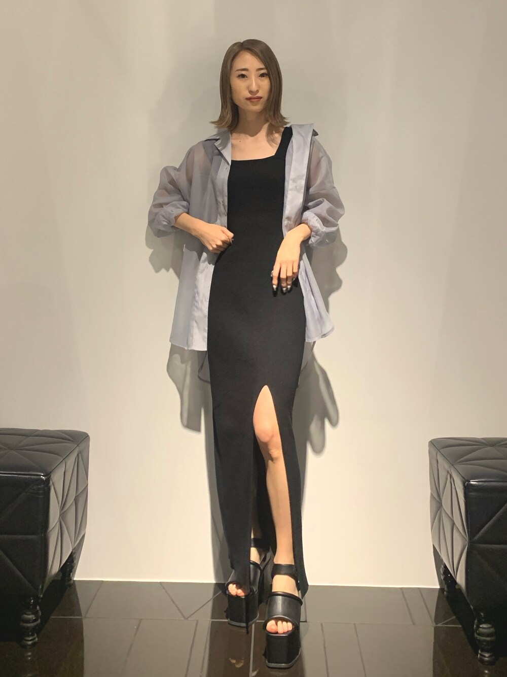 杉原優利(EMODA)のワンピース「ワイドストラップリブスリットワンピース」を使ったコーディネート