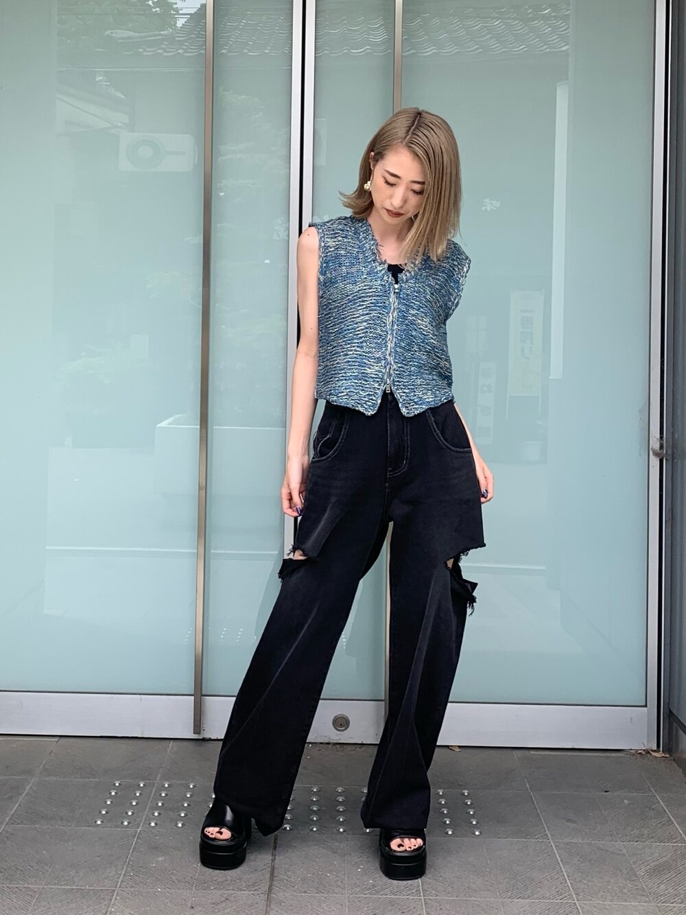 杉原優利(EMODA)のベスト「クラッシュニットベスト」を使ったコーディネート