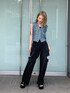 【ベスト】 ジップがついているニットベストです。 ブルーとオレンジはミックスされた糸使いがオシャレです。前開きで着てもよし、閉めてもよしです。春秋は中に長袖やブラウスと合わせたコーデがオススメです! 【トップス】 インナーで着用してるカップ付きのトップスは、EMODAのスタンプロゴが特徴です。程よいフィット感です。 【デニムパンツ】 今季EMODA大人気のワイドジーンズです。 太もも部分のスリットは斜めにカットされているので、太もも部分が太く見えがちなワイドデニムもスッキリした印象になります! 今年はこのデザインがとても人気で1本持っているとコーデがより映えます♡ 【シューズ】 ワイドデニムに合わせて、厚底にしました。 152cmの私だとボトムスの丈が長いので、厚底サンダルがあるとコーデのバランスが取りやすいです。 ストラップはないので、履きやすいです。