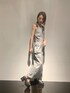 【ワンピース】 肩のベルト部分は5段階で調整できるようになっていました。 1番短いところで設定し着用しました♪ くるぶしぐらいの位置です。 ウエスト部分はギャザーっぽくなっているので、シェイプされた印象になり細見え効果があります。 【サンダル】 マジックテープで足首の止め具合を調整することができます。足元にボリュームがあるのが今年らしいデザインです♪ アッパー部分はスポンジ素材になっているので、靴擦れがしにくいと思います!