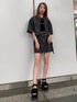 【シャツ】 デニム生地の半袖シャツになります👔 夏でも着れる薄めの生地になってました♪ 袖周りはオーバーなので風通しも良かったです! 胸元にポケットが2つ付いてて、ジップで前も閉めれるデザインになってます💜 【スカート】 左側にベルトがついており、コーデにアクセントを加えてくれます💞 こちらも薄めのデニム生地になっております! インナーパンツは付いていない為涼しく着ることができると思います☺️👍🏻 【シューズ】 コードデザインが含まれる厚底サンダルです♪ 見た目より軽いので足が疲れにくく、マジックテープなので着脱も楽でした!