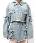 【デニムジャケット】 フードが取り外しできるデニムショートジャケットになります❣️ 春らしくアイスブルーのカラーで明るく見えるように着用してみました🩵🩵🩵 丈感はショートなので腰ぐらいの位置になります。 袖のカット部分がリボンで繋ぐデザインなので、肌見せを楽しみたい方はゆるく結んでみてください😌 袖周りはオーバーなので少し厚めのニット素材も着れそうでした! 【デニムショートパンツ】 前から見るとアシンメトリーの形をしたスカートっぽいデザインですが、後から見ると完全にショートパンツの設計になってます😳 後のお尻部分に縦のステッチラインが入っているので、お尻が削られたようにスッキリして見えます✨ ポケットは左右についており、実際に中にスマホが入れれる大きさになってます。 【トップス】 サムホール付きのデザインになります。 胸元は広めに開いているので、デコルテをきれいに見せることができます💫💫 ストラップは前後どちらにでもクロスで着ることができる2way使用なので、ロングヘアの方は前にクロスがあるとワンポイントとして見せやすいと思います🫶🏻 生地感は薄めの細いリブで、ピタッとしたシルエットになります! 【シューズ】 季節問わずに着用できるブーツです! つま先はラウンド型なので指先に締め付けが感じられないデザインになります。 歩くとコツコツとした音が鳴るヒールタイプです。 全体的にくしゅくしゅとしたデザインとベルトが2本あるので足元に重みを出してくれます!コーデはタイトめを意識するとスタイルアップします💕 膝より下の位置のブーツなのでソックスを合わせるとおしゃれのレベルが上がります😎✨