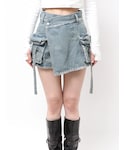 杉原優利(EMODA)のデニムジャケット「カットスリーブフードデニムブルゾン」を使ったコーディネート