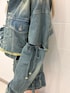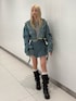 【デニムジャケット】 フードが取り外しできるデニムショートジャケットになります❣️ 春らしくアイスブルーのカラーで明るく見えるように着用してみました🩵🩵🩵 丈感はショートなので腰ぐらいの位置になります。 袖のカット部分がリボンで繋ぐデザインなので、肌見せを楽しみたい方はゆるく結んでみてください😌 袖周りはオーバーなので少し厚めのニット素材も着れそうでした! 【デニムショートパンツ】 前から見るとアシンメトリーの形をしたスカートっぽいデザインですが、後から見ると完全にショートパンツの設計になってます😳 後のお尻部分に縦のステッチラインが入っているので、お尻が削られたようにスッキリして見えます✨ ポケットは左右についており、実際に中にスマホが入れれる大きさになってます。 【トップス】 サムホール付きのデザインになります。 胸元は広めに開いているので、デコルテをきれいに見せることができます💫💫 ストラップは前後どちらにでもクロスで着ることができる2way使用なので、ロングヘアの方は前にクロスがあるとワンポイントとして見せやすいと思います🫶🏻 生地感は薄めの細いリブで、ピタッとしたシルエットになります! 【シューズ】 季節問わずに着用できるブーツです! つま先はラウンド型なので指先に締め付けが感じられないデザインになります。 歩くとコツコツとした音が鳴るヒールタイプです。 全体的にくしゅくしゅとしたデザインとベルトが2本あるので足元に重みを出してくれます!コーデはタイトめを意識するとスタイルアップします💕 膝より下の位置のブーツなのでソックスを合わせるとおしゃれのレベルが上がります😎✨