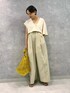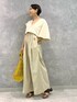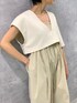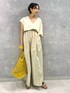 トップスは抜け感を見せたかったのでVネックを前面にしました。袖が左右アシンメトリーになっていて、アームホールが広いので二の腕が細く見えます✧︎ 肩紐が調整可能でお好みの丈感で着て頂けます♪01サイズ着用でくるぶしにかかるくらいの着丈です。
