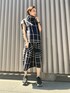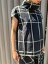 大きめのチェック柄のセットアップは思わず目が惹かれます。取り入れるだけでこなれ感のあるコーディネートに。ボリュームある襟元はは一折りして着てみました。自然にくしゅっとさせても可愛いです◎ フレンチスリーブの袖は腕や肩を隠してくれて、全体的にゆとりがあり軽いので着ていて楽ちん。 スカートは01サイズ着用でふくらはぎにかかるくらいの着丈です。