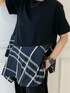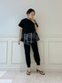 FIN COMBINATION CSのチェック柄ver.が登場! 落ち着いたモノトーンの色味なので、まだ暑さが残る秋口まで長く着ていただけます◎ アシンメトリーの裾が可愛く、スッキリ見えるようにストレッチイージーパンツと合わせました。デニムと合わせてカジュアルMIXスタイルもオススメです。
