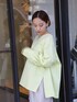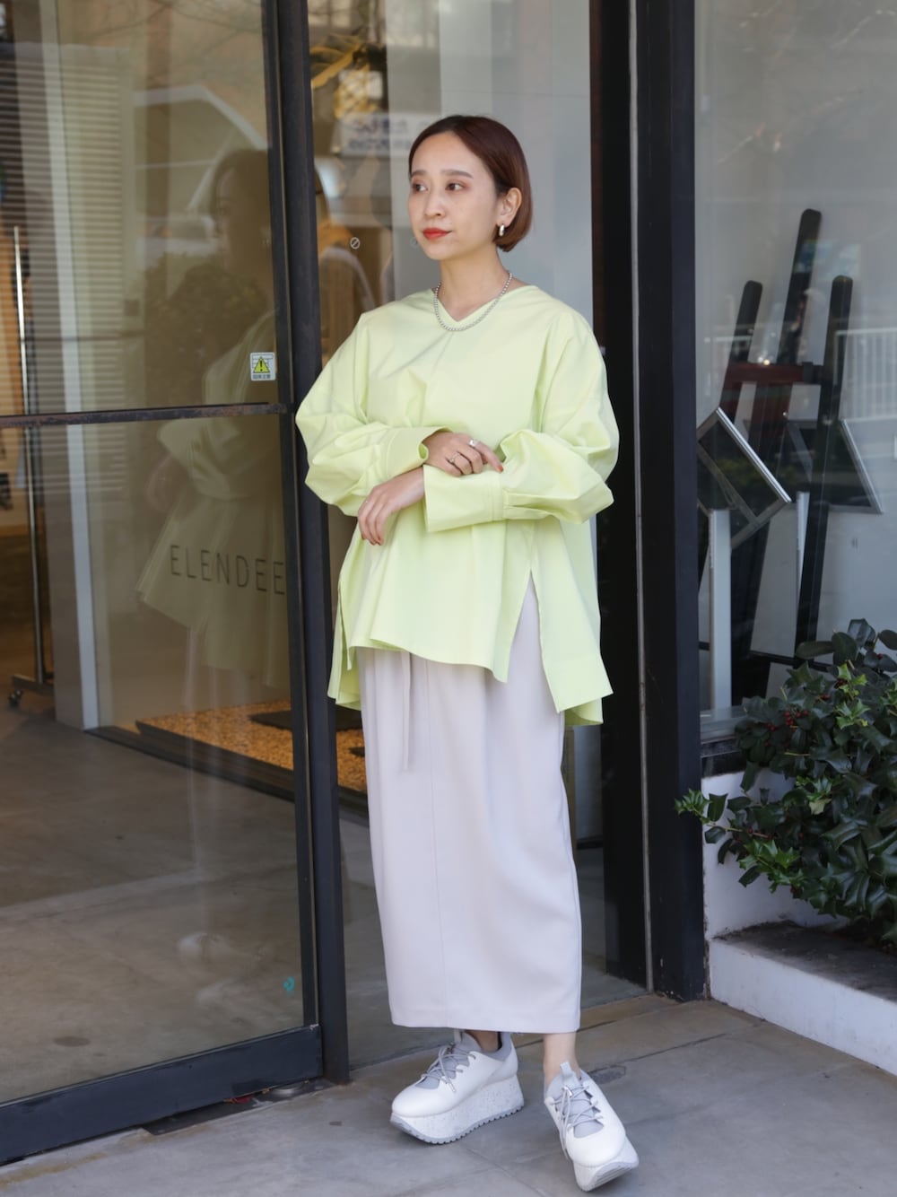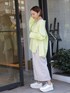 SET UPシリーズのスカートを着回し💫 昨年も人気だったフレアブラウス🌿 ܸ身に付けるだけで元気が出るイエローに一目惚れ🍋ゆったりシルエットなので、細身なスカートとも相性が良いです◎ スカートは02サイズ着用で、くるぶしから約5cm上の着丈です。