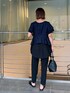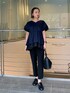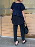 ELENDEEKらしいバックプリーツが特徴的なブラウス×大定番のテーパードパンツ💐 私は学校行事に着ていきたいなとイメージしながらコーディネートしました🏫ヒールを合わせたら更にキレイめに✨️ ブラウスはネイビーとブラックの配色になっています◎首元の開きも程よいので上品な印象に。オフィスカジュアルにも、オンオフご愛用していただけるかと思います💫 テーパードパンツは01サイズでくるぶしに少しかかるくらいの着丈。伸縮性があり1度履いたら他のテーパードパンツは履けないくらい着心地が良いです😳00・01サイズ共に丈つめ無しでピッタリの絶妙な丈感でした。
