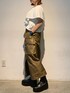 肩周りをカバーしてくれる大きめラッフルが特徴的なカットソー✨️ 身幅は狭めに、タックがしっかり入っているので肩幅をスッキリ見せてくれます。 生地感はしっかりとしたジャージーのような素材で、ハリ感がありよれにくいです👏 キレイめカジュアルが好きなので、トレンドのカーゴスカートと合わせました🌿足元は少しゴツめなブーツを。