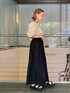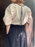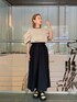 ベージュに黒のパイピングがポイントのブラウス。拘りの大きめなお袖が他には無いデザイン…!自然と腕が綺麗に細見えします✨️背中部分にはリボンが付いていて、バックスタイルも抜かりなく💫 スカートのように見えるのはワイドなギャザーパンツ◼️ぐるりとゴムで楽ちんさはもちろん、ゆとりがあるので気温が高い日も涼しく履いていただけます🌞🌴