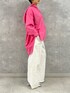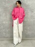 【トップス】 店舗限定カラー:ピンク🌷フリーサイズ着用 程よいオーバーサイズのシャツは、後ろが少し長い着丈なので気になる腰周りもカバーしてくれます◎ 【インナー】 店舗限定カラー:ピンク🦩フリーサイズ着用 ヘルシーな肌見せが出来るシアーニット。少し長い袖丈で、くしゅくしゅさせて着るのがオススメ◎首の開きも調度良いので使い勝手がよく毎日着たくなる1枚✨️ 【パンツ】ウエストがぐるっと総ゴムになっているワイドパンツ。左側にあるサイドリボンがポイント💡ミュール×01サイズ着用でくるぶしが完全に隠れる着丈です。 【シューズ】 中敷き・甲に当たる部分がふかふかで痛くなりにくくなっています。ウェーブのカッティングが取り入れるだけでオシャレ見えする1足。22.5cm・甲低・幅狭で37サイズがぴったりでした✨️