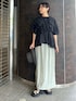 【トップス】 前面のフリルが特徴的な、華やかブラウス✨️着るだけで気分があがります💐後ろが少し長く、ヒップにかかる着丈です。背中部分のファスナーの引手がポイントに。 【ボトムス】 軽量で楽に履けるスカート🕊シワ加工が施されているので、座っても気にならないのが嬉しい。後ろスリット入りで足さばきも良いです☺︎ どんなトップスとも相性よく合わせられます✨️ 【シューズ】 左右アシンメトリーなサンダルは、しっかりホールドされているので安定感◎インソールには低反発クッション入りで疲れにくい1足です👡 【ハット】 目深にかぶらなくてもしっかりと隠れるつばなので、紫外線が強い季節に活躍する帽子。ペーパー素材でとても軽い着用感です◎