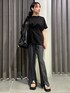【トップス】 さらりとした着心地のアシンメトリーカットソー✨️肘にかかるくらいのゆったりとした袖丈と、腰回りカバーが出来る着丈◎気軽に着られるカットソー素材ですが、ひとくせあるデザインとするんとした表面感でキレイめに。 【ボトムス】 センタースリットが入った、履くだけで脚長効果アリのフレアパンツ💡01サイズ着用で、くるぶしが隠れる着丈です。 【シューズ】 左右アシンメトリーのサンダルは、しっかりホールドされているので安定感あり◎インソールには低反発クッション入りで疲れにくいです✨️ 【バッグ】 大きめのメタリックバッグ。大容量なので仕事はもちろんペアレンツバッグ・旅行にもおすすめ。ハンドル部分には中綿が入っているので負担がかかりにくいです◎ショルダー・ハンドの2way仕様も嬉しい👏
