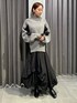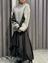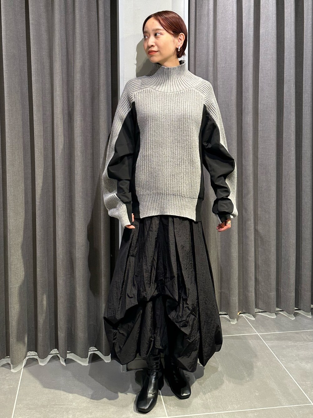 【トップス】 毛が入っていないドッキングトップスは、ちくちくしにくいニット✨️ゆったりとしたサイズ感でストレスフリー。ちょうど擦れる部分がタフタ素材になっているので毛玉が気になりにくいのも嬉しい。フリーサイズでヒップにかかる着丈です。 【ボトムス】 バルーンシルエットがポイントのスカート🎈軽量で自宅で洗えるのが嬉しい✨️01サイズ/153cmくるぶしが隠れる着丈です。 【シューズ】 つま先の形に沿ったデザインで、足指長めなのですが窮屈感無く履けました◎ 履いてみると見た目以上に安定感があります!足をスッキリ見せてくれる、ちょうど良い丈のショートブーツ👢普段22.5-23.0cmで37サイズがピッタリ。