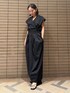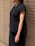 【トップス】 コンパクトなサイズ感でジャストに着られました。ドロップスリーブが腕周りをスッキリと見せてくれます。インアウトどちらでも着用できるので様々な着こなしをたのしめま✨️インナーにシアーをレイヤードしたり、キャミソールを着てジレのように着るのもおすすめ。 【ボトムス】 コクーンシルエットが特徴のスカートは、ブラウスとセットアップが可能です○後ろはゴムになっていてストレスフリー。スリット入りなので足さばき良く履けます。 【シューズ】 アシンメトリーデザインの華奢ストラップサンダル。しっかりとホールドされて抜けにくくなっています。22.5-23.0cmで37サイズがジャストでした💐