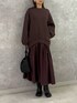 【ワンピース】 もちもちダンボールニット素材のワンピース⚫️ 肌触り良くちくちく感もないのでずっと着ていたくなるノンストレスな1枚。スカートとトップスがドッキングされていて、着るだけで決まり時短になります✨️01サイズでくるぶしにかかる着丈。フラットシューズ合わせでも床に付かない長さです。 【バッグ】 中は巾着になっているので荷物が落ちてしまう心配がありません👏三角形に形を変えて使うことも出来るELENDEEK人気のシリーズ✨️