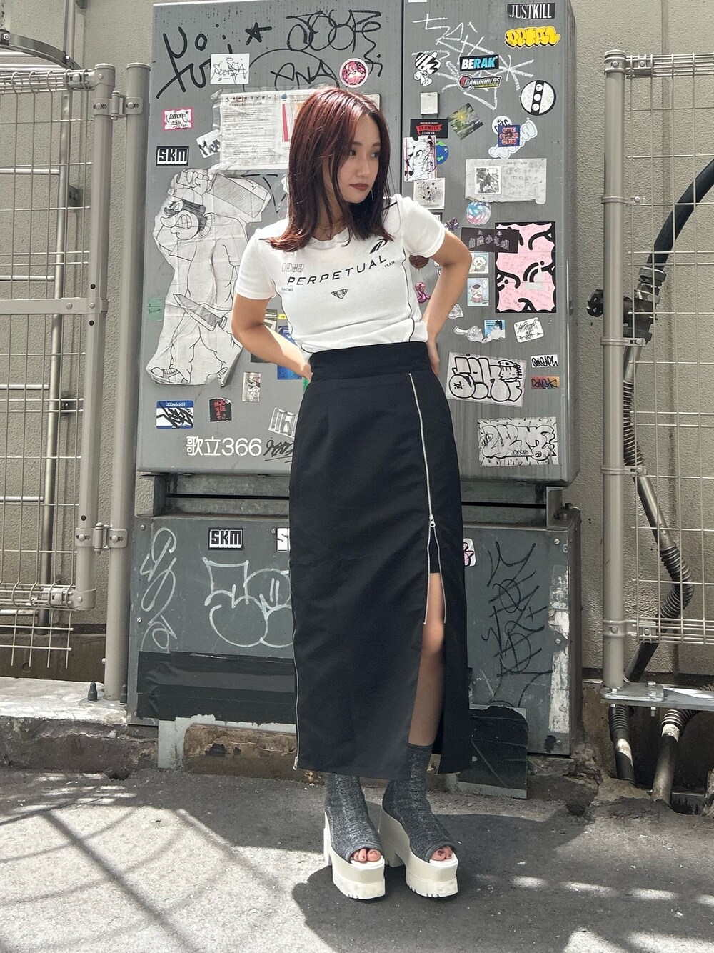 トレンドのレーシングTをMURUAらしくスリットスカートでフェミニンに落とし込みました!