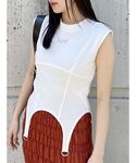 【outer】今年のGジャンは袖周りのボリューム感を抑え、コンパクトに着れるシルエット! デニム特有の硬さがなく、とにかく柔らかいのでシャツ感覚で羽織れます⭐︎ 一押しポイントはアームスリット♡ 綺麗めスタイルにもマッチし、素肌を見せてもインナー合わせも可愛さ200%です! 【tops】トレンドのガーターデザインのタンクトップ!(ボトムインして着用しています) フロントのロゴもY2Kライクなラインストーンが施され、可愛くお召しいただけます♡ 【skirt】こちらもトレンドのシャーリングスカートは、MURUAらしく綺麗めモードにお召しいただけるデザインです! 光沢素材なのでシンプルなトップスやシューズでも見栄えしキマる1着です⭐︎