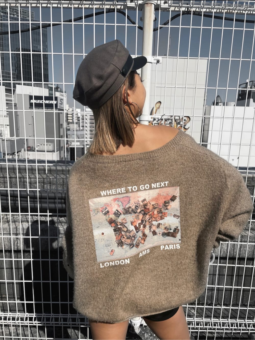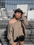 バックデザインがインパクトのある大人気のニットです。カラーが6色あり、ピンク、ミント、ベージュが今年の新色となって発売中です。着用した時のチクチクしないふんわりとした気持ち良さはどのニットよりも着心地抜群です。ゆったりしているので前側だけINして着てみたり、首元が少し広めになってるのでワンショルっぽく着ても可愛いです♡また中にオーバーサイズのシャツをレイヤードしても◎ニットが大きめなのでショートパンツと合わせてシルエットが可愛くなるようなコーデにしてみました!