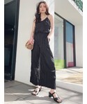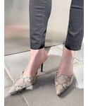 一枚でお洒落に着れるロンパースにワンポイントでパイソン柄のポインテッドミュールを合わせたきれいめコーデです❤︎ ロンパースはくしゅくしゅっとしたデザインが目を引くものになっていて、一枚で着てもお洒落な印象になる最強アイテムです!ウエスト位置が高めなのでスタイルアップがされるのと、なによりもバックデザインのレースアップがとっても可愛く、シンプルだけど女性らしさも忘れないデザインになってます❤︎ 室内や少し肌寒い気温のときはシャツを羽織っても可愛いですし、ミュールではなくて最近トレンドのスニーカー合わせでも可愛いです!生地も涼感があるので肌触りがとってもよく、夏にあったら絶対使える一枚になってます!