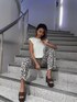 今流行りのレオパード柄を使ったシンプルなきれいめカジュアルコーデです❤︎トップスは肩パッドが入っていることによってボリュームが出るので、二の腕を華奢に見せてくれる魔法のトップスです❤︎シンプルなのでアクセサリーやパンツで雰囲気を変えられるアイテムになっております!フレアパンツで合わせていますがデニムやスキニー合わせでも相性抜群で可愛いです! パンツはレーヨン100%で作られているのでかなり伸縮性があり、涼感もある履きやすさ抜群なアイテムです!またハイウエストなので、ショート丈のトップス・ビッグTシャツをインして着用するでも、着回ししやすいフレアパンツになってます!足元はコルクサンダルで夏らしさを出しています❤︎