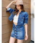 おすすめセットアップ🌟ジェイダらしいショート丈のデニムGジャンはボトムスが合わせやすく着回しがかなり効くようになっています❤︎ハイウエストのスキニーパンツと合わせると丈がちょうどよくコーデが決まります! スカートはセンターの切り返し部分が可愛く、デザイン性があるのでトップスがシンプルなものでもスカートにインパクトがありコーデが決まります! おすすめはセットアップコーデで、インナーに発売中のリブベアビスチェを着用してジェイダらしいコーデにしてみました❤︎
