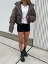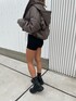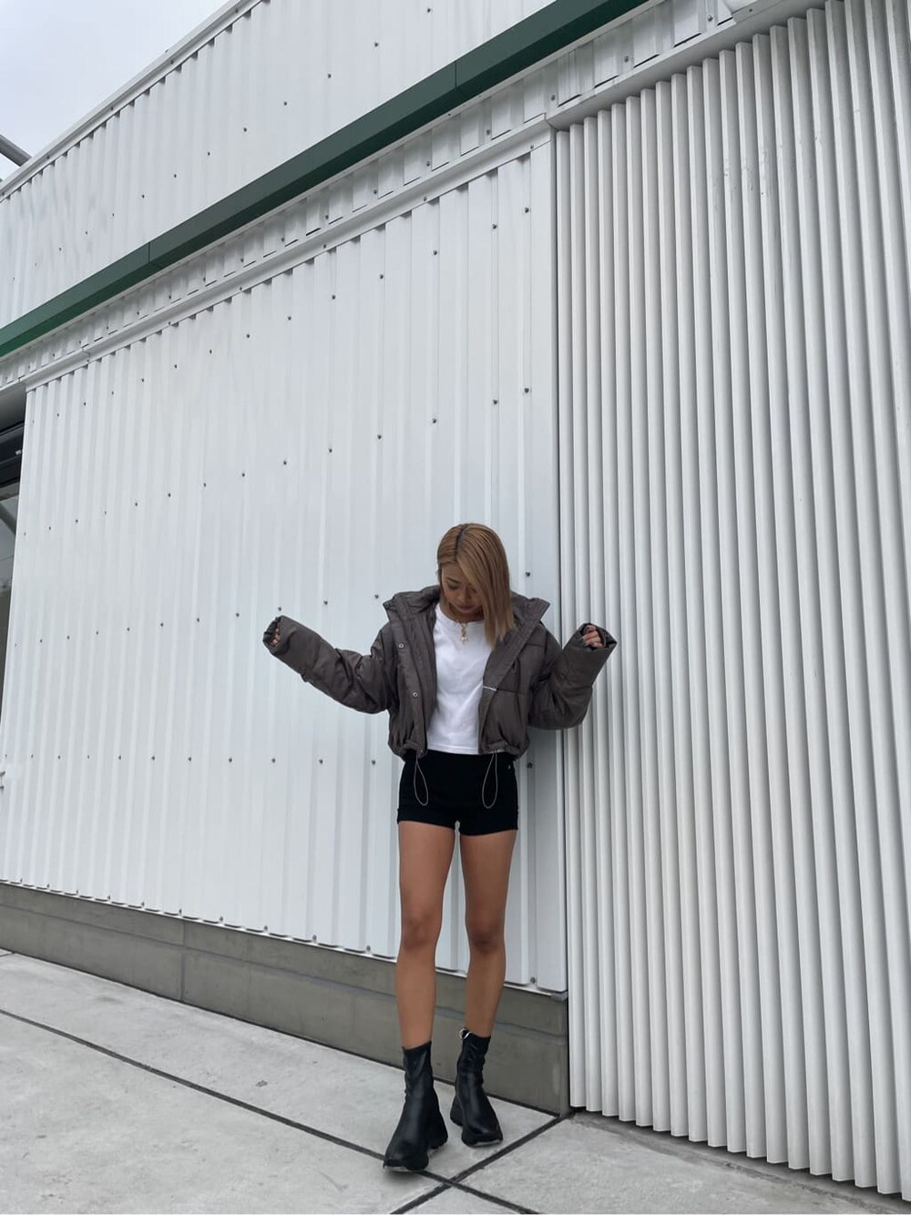 レザーダウンを使ってコンパクトシルエットコーデ❤︎毎年大人気なショートダウンが、今季はなんとレザーショートダウンも発売中です!レザー生地なので、よりジェイダらしいかっこいい印象で、ふつうのショートダウンと比べると少し強めな印象になりますが、合わせ方によっては雰囲気変えられるので、レザー生地のダウンもとってもおすすめです^^また、今回着用しているブラウンの色が濃すぎず、とっても可愛い色だったので選んでみました❤︎スキニー合わせも勿論合いますが、今回はハイウエストショートパンツとインソールが入っているブーツを選んで脚長効果も狙っています^^シンプルなコーデですが、可愛らしいシルエットとスタイルアップするコーデなので是非参考にしてみてください❤︎