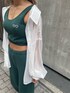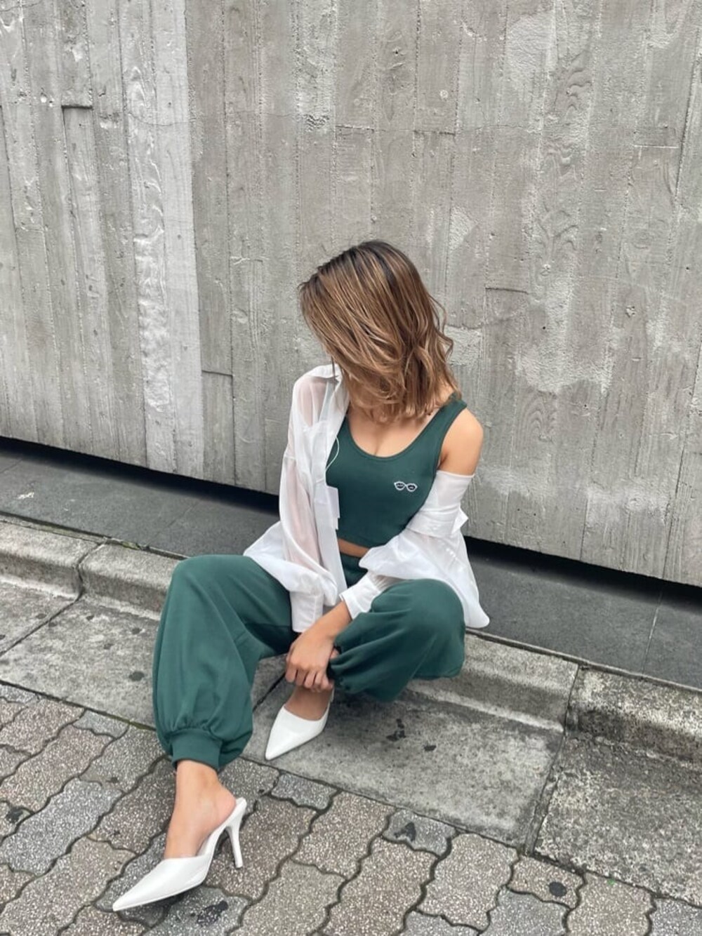 トレンドを押さえたセットアップコーデ❤︎【setup】最近ジェイダでも登場することの多いグリーンのお色味が、目を惹くようなセットアップが発売中❤︎(グリーンのお色味は店舗限定カラーになっております。)ワンポイントでビスチェとパンツにそれぞれサングラスの絵がデザインされており、発売前から大人気のアイテムです❤︎ビスチェはパット付きになっており、身長160cmの私が着用して、おへそ上にくる丈感になっています!パンツは裾がギャザーになっている為、低身長の方でも着やすいようなデザインです!スウェット生地ですが、薄手なので真夏でも着用して頂けるような生地感でした^^セットアップの着用がオススメですが、ビスチェ・パンツ、別々でもお使い頂けるようにもなっています^^【shirt】近づいて見てみるとラメ加工が施されているシンプルなシャツが発売中です❤︎一見ふつうのシャツですが、近づくとラメ加工がされているのが、おすすめポイントです^^透け感もあるので羽織るときれいめ・セクシーな印象にもなり、女性らしい雰囲気のコーデになります❤︎カジュアル・きれいめ共に合わせやすく持っていたら重宝するのでおすすめです^^【shoes】通年大人気のポインテッドミュールです!合わせやすさはどんなコーデにも合うといっても過言ではないくらい、使い回しがとっても効きます❤︎靴のサイズが23cm〜23.5cmでMサイズを着用しており、履くのに気にならない程度でかかとが少しあまります!靴擦れしやすい方には履く前にかかとで足の甲の部分を踏んで柔らかくするのをお勧めしています^^