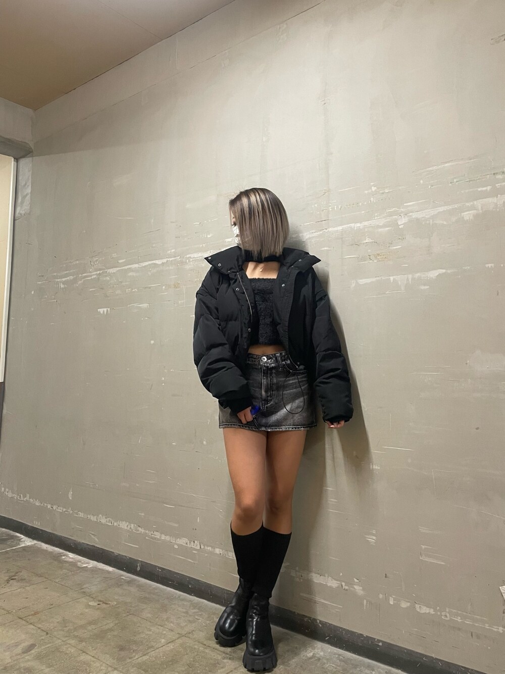 カジュアルコーデ❤︎【アウター】袖の取り外しが可能となっているダウンコート。厚手のお洋服を着ても嵩張らない、中が余裕のあるタイプのアウターです^^ベストにもなるので秋から冬まで長く使えるおすすめアイテムです❤︎【トップス】どちらが前でも可能となっている、店舗でも人気のシャギーチョーカートップス。サラッとしたシャギー素材で直接肌に触れてもチクチクしませんでした^^丈感はおへそが見えるか見えないかくらいの丈感です。【ボトムス】ウォッシュ加工がされている加工感が珍しいデニムスカート。160cmでSサイズ着用しています。一年中使えるので持っていて損はないです^^【シューズ】ニットドンキングされたインソール付きのブーツ❤︎シンプルなデザインなのでカジュアル・きれいめ、どちらにも合わせやすく持っていたら重宝するようなアイテムです^^