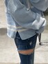 【トップス】横に大きくロゴがデザインされているニットトップス❤︎生地がモチモチで肌触り抜群です^^丈感も短すぎず、長すぎ、着やすいです✨【ボトムス】GYDAと言ったらのデニムパンツ。大胆なダメージがセクシーで女性らしく、ジェイダにしかないデザイン❤︎細見え効果抜群です❤︎【シューズ】どんなお洋服にも合う持っていたら必ず重宝する通年大人気のミュール^^年々、改良されており、クッション性にも優れているので履きやすさも◎私は23.5cmで、Mサイズを履いています❤︎