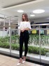モノトーンシンプルコーデ❤︎【トップス】胸元にGYDAロゴのマークが大きく立体的にデザインされているオフショルトップス❤︎二の腕が隠れるサイズ感やウエストがゴムなのでウエストがキュッとスタイルアップされる、拘りある一枚です✨ 【ボトムス】ウォッシュ加工されているので、固いデニム生地の状態からかなり柔らかく作られており、ジェイダで大人気アイテム❤︎ 普段ジェイダのスキニーはXSかSですが、XXSを着用しています!かなりストレッチが効いていて、履いてくると自分の足のサイズに合ってきます^^【シューズ】どんなお洋服にも合う持っていたら必ず重宝する通年大人気のミュール^^年々、改良されており、クッション性にも優れているので履きやすさも◎私は23.5cmで、Mサイズを履いています❤︎