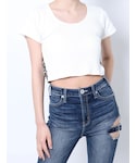【トップス】前はシンプルですが、レオパード柄のリボンが目を惹くようなデザインになっているトップスです❤︎また、ネックの形もスクエア型に近いUネックなので、大人っぽいような、きれいめ系の印象になります❤︎ハイウエストのパンツと合わせるとお腹が隠れるくらいの丈感です!【ボトムス】GYDAと言ったら、このデザインというデニムパンツです✨大胆なダメージがセクシーで女性らしく、ジェイダにしかないデザインです❤︎細見え効果抜群です❤︎