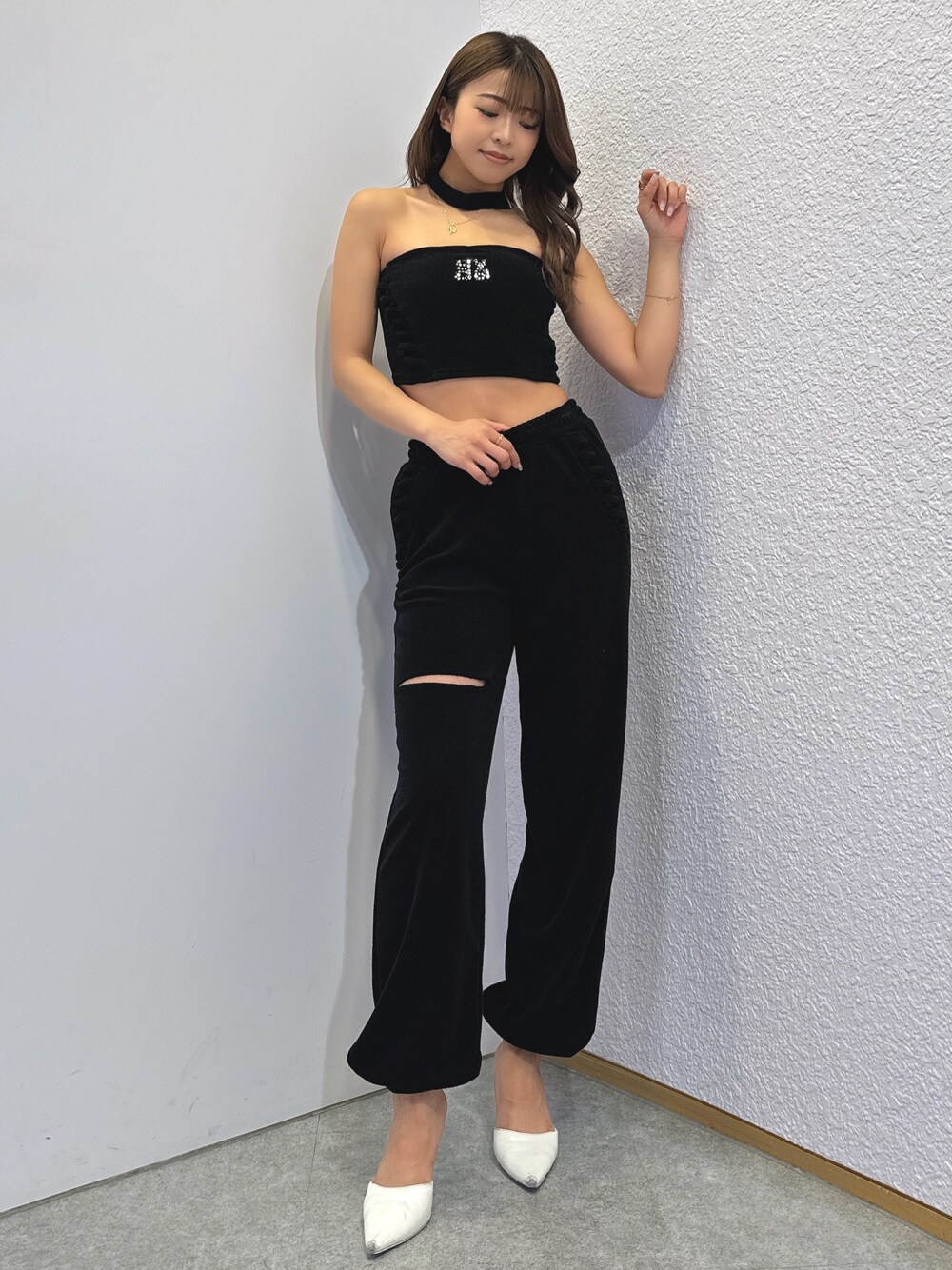 カジュアルコーデ❤︎ 【トップス】パンツとセットアップでの着用可能なチョーカー付きのニットトップスです♥チョーカーは着脱と調節可能になってます✨ビスチェはパット付きなので一枚で楽ちんに着て頂けます♥生地感はふんわりとしたパイル生地になっているので着心地抜群です❤︎ 【ボトムス】トップスとセットアップで着用可能なパンツです♥ウエストがゴムになっているので着やすく、くるぶしもゴムデザインなので低身長の方も着やすくなっています♥生地感はふんわりとしたパイル生地になっているので着心地抜群です❤︎ 【シューズ】どんなお洋服にも合う、持っていたら必ず重宝する通年大人気のミュールです✨年々改良されており、クッション性にも優れているので履きやすさも◎です❤︎私は23.5cmで、Mサイズを履いています♥