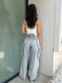 カジュアルコーデ❤︎ 【トップス】フロントジップになっているパット付きのキャミソールです!広めのUネックになっているのでお顔周りがスッキリ見えます✨キャミソールはアジャスター付きで調節可能です❤︎今回はダボっとしたワイドデニムに合わせてカジュアルコーデにしてみました❤︎ 【ボトムス】ダボっとした印象の大きめのポケットが着いたワイドパンツです!サロペット紐は付けても垂らしてもその時の気分で可愛く着て頂けます♥腰に着いたベルトはウエストが調節出来るので様々な骨格に合わせやすくなっています✨ピタッとしたお洋服と合わせても可愛いです♥161cmでSサイズを履いています! 【シューズ】コーデに取り入れることで一気に季節感がでるコルク生地のサンダルです♥厚底なので脚長効果もありスタイルアップに繋がります✨23.5cmでMサイズをはいています!
