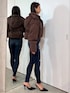 カジュアルコーデ❤︎ 【トップス】 胸元がクロスになっているカシュクールデザインが可愛い毎年大人気のトップスです❤︎程よい肌見せデザインが女性らしさ満載なトップスで、カジュアルなボトムスと合わせてもカジュアルになりすぎず、きれいめ系な印象になるようなアイテムです❤︎ 【アウター】毎年大人気のショートダウンコートです✨ハイブランド並みの暖かさに、袖とフード取り外し可能なので着回し抜群、軽さもあるので疲れにくくサラッと羽織れるアイテムです✨前が短めで後ろが長めになっているショート丈デザインなので、ボトムスを選ばず着て頂けます❤︎ 【ボトムス】ジェイダと言ったらの通年大人気のSIDE RIPPED スキニーデニムのミドルウエストバージョンです!大胆なダメージがセクシーで女性らしく、ジェイダにしかないデザインです❤︎細見え効果抜群です❤︎161cmでXSサイズ履いています! 【シューズ】どんなお洋服にも合うので持っていたら必ず重宝する通年大人気のミュール~年々改良されており、クッション性にも優れているので履きやすさは勿論、長時間歩いても疲れません✨私は23.5cmで、Mサイズを履いています❤︎