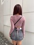 katsusa(GYDA)のニット/セーター「BACK リボンラメシャギーショートニットトップス」を使ったコーディネート