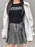 katsusa(GYDA)のデニムスカート「ハイウエストWIDE BELTプリーツデニムスカートライクショートパンツ」を使ったコーディネート