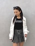 【トップス】カジュアルコーデにはもってこいのアイテムです❤︎字体がカジュアルな雰囲気をかもしだしており、カジュアルなコーデの印象になります✨ショート丈でピタっとしているのでボトムスは基本何でも合わせやすいです✨ 【ボトムス】カジュアルな印象を持たれがちなデニムスカートですが、プリーツデザインなので女性らしい印象が大きくでるアイテムです✨カジュアルに決めたいけど女性らしい・女の子らしい感じもほしいという時に取り入れるとオススメです❤︎161cmでSサイズ履いています! 【アウター】後ろのスタッズデザインがインパクトあるレザージャケットです✨インナーやボトムスがシンプルで、羽織りがほしいという時にこのレザージャケットがあると一気にかっこよくお洒落に決まります✨ 【シューズ】持っていたらコーデを組む時に足元は迷いません。何にでも合う万能すぎるアイテムです✨23.5cmでL履いています!