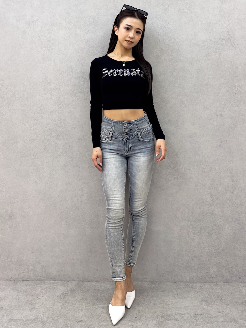 【トップス】カジュアルコーデにはもってこいのアイテムです❤︎字体がカジュアルな雰囲気をかもしだしており、カジュアルなコーデの印象になります✨ショート丈でピタっとしているのでボトムスは基本何でも合わせやすいです✨ 【ボトムス】後ろのバッククロスデザインがセクシーな印象に❤︎カジュアルだけど、かっこよく女性らしいコーデに決めたい時に取り入れるのがおすすめです✨スタイルアップにも繋がり、履いただけでまるでモデル体型になれます✨161cmでXS履いています! 【シューズ】どんなお洋服にも合うので持っていたら必ず重宝する通年大人気のミュール~年々改良されており、クッション性にも優れているので履きやすさは勿論、長時間歩いても疲れません✨私は23.5cmで、Mサイズを履いています❤︎