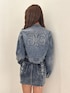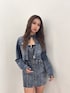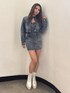 katsusa(GYDA)のデニムジャケット「Symmery GYDA EMBOSSノーカラーデニムショートブルゾン」を使ったコーディネート