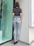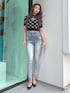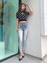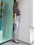 【トップス】生地はしっかりめで、二の腕がしっかり隠れる半袖のニットトップスです✨きれいめ系な印象になるアイテムです❤︎ 【ボトムス】デザイン性あるデニムスキニーパンツで、レースアップと後ろのチラッと肌見せのデザインが女性らしい印象になります❤︎161cmでxs履いています! 【シューズ】GGロゴのキラキラが付いたミュールで、キラキラのロゴは取り外し可能なのでその時の気分で雰囲気を変えられます✨23.5cmでMサイズ履いています!