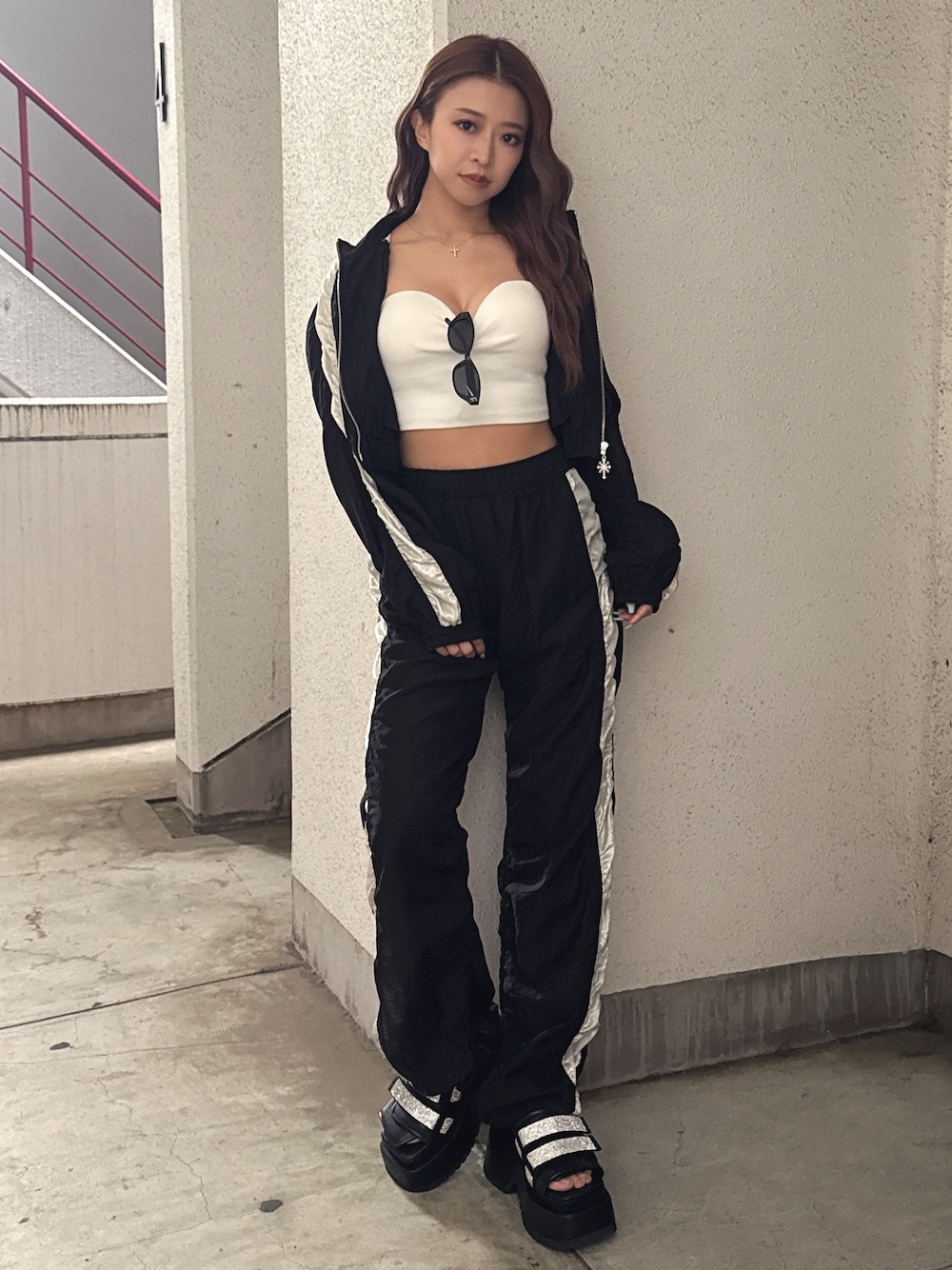 【インナー】通年大人気のビスチェです❤︎持っていたら必ず重宝するのでオススメです✨ 【アウター】セットアップでの着用がオススメです✨ファスナーのチャームのデザインが可愛いのもお洒落な印象になります✨ 【ボトムス】セットアップでの着用がオススメです✨軽くてとても動きやすくポケットが付いているのもデザイン性があり可愛くてオススメです✨ 【シューズ】カジュアルな印象になる厚底サンダルです✨ミニボトムス、ワンピース、スキニー様々なコーデに合わせやすく、重宝致します✨23.5cmでL履いて少し余りはありますが、脱げる事は無く履いてます!