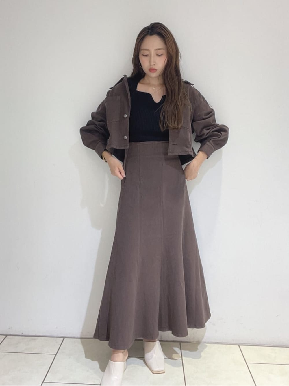 デニムセットアップ🤍CIMARRON JEANS×LAGUNAMOONコラボ 【jacket】デニムって固くて動きにくいイメージがあるかもしれないですが、こちらは肌触りが滑らかでストレッチ素材で毎日着回したくなるジャケットです◎丁度いいショート丈でハイウエストボトムスやワンピースにも合わせやすいので単品使いもおすすめです! 【skirt】ジャケットと同素材のスカートは程よくマーメイドシルエット🐚ラインを拾いにくいのでマーメイドスカートが苦手な方でも挑戦しやすいです! 足元はショートブーツやスニーカー合わせでも◎ 私は157cmでSサイズ着用ですが、くるぶしが隠れるくらいの丈感でした👟