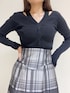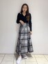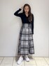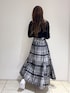 大人ガーリーなモノトーンコーデ🤍🖤 【tops】 ショルダー部分のカットアウトデザインとVネックが顔周りをスッキリと見せてくれます✨フロントにはスリットが入っているのでボトムスinでもoutでも着ていただけます!程よくフィット感のあるニットなのでどんなボトムスにも合わせやすくおすすめです◎ 【skirt】 大きなチェック柄でコーデの主役に👑 光沢感のあるジャガード素材でチェックでもオトナっぽく決まります ✨私はシンプルな黒ニットと合わせてスカートとの色の統一感を出し、足元はスニーカーを合わせてスポーティーなスタイリングにしてみました👟🤍 ブラウスと合わせれば綺麗めやオフィスカジュアルにもぴったりのアイテムです◎