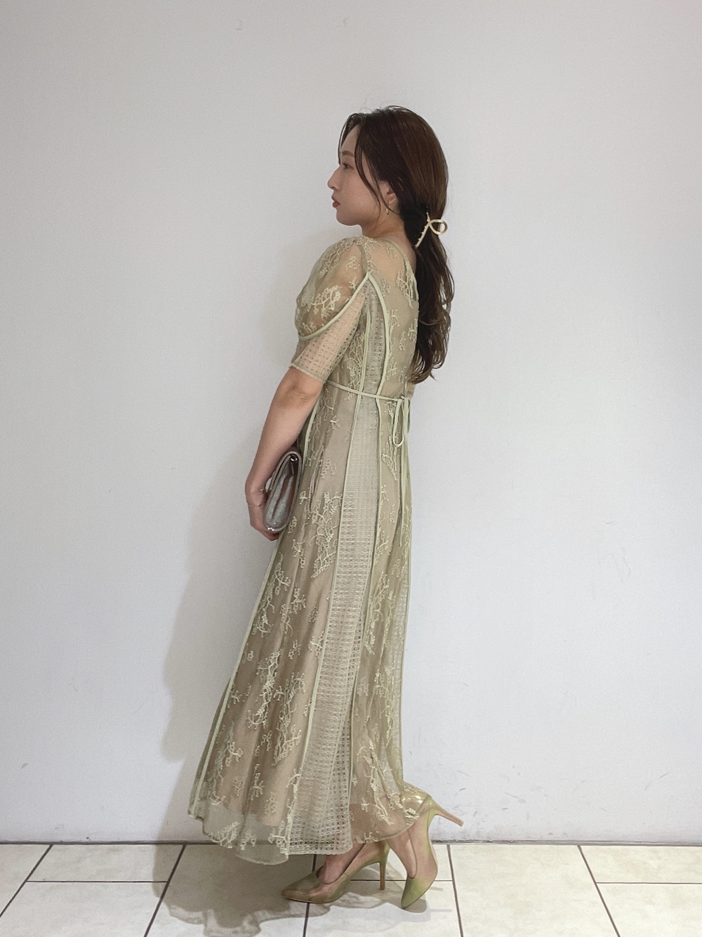 "360度着映えドレス" 【dress】 名前の通りどこから見てもレースの綺麗な デザインでお袖周りも立体感を出してくれ、 一段と女性らしいシルエットにしてくれます✨ 腰周りが気になる方でもラインが出過ぎず、 背中も程よく綺麗なVラインカッティング なのでバックスタイルも決まります🤍 【bag / shoes】 LAGUNAMOONのドレスに合うように お作りしておりラメでも艶感のあるラメなので オトナでも身に付けやすいお色味です🤍 色違いでシルバーもあるのでドレスに 合わせてお召し頂きたいです🤍 私の普段の足のサイズは( 23.5〜24.5 )なの ですが、ぴったりと履くならSサイズでした◎