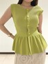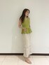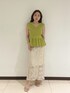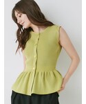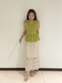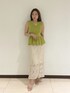 ″ 夏カラーコーデ ″ 《tops》 ニット素材のペプラムデザイントップスです🌿 前後どちらを前にしても着れる2WAY仕様で 首元スッキリさせたい方はVネックで、 アクセントが欲しい方は前ボタンでの着用 がおすすめです◎ (画像7枚目から前後変えてます) 《skirt》 しっかりとした素材のクロシェスカート Iラインだけど女性らしさのあるシルエットで 綺麗なボディラインを演出してくれます✨