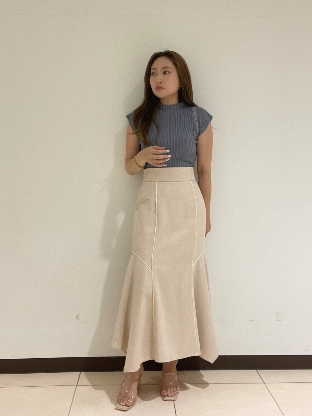 MISAKI KUBO(LAGUNAMOON)のスカート「パイピングイレヘムマーメイドスカート」を使ったコーディネート